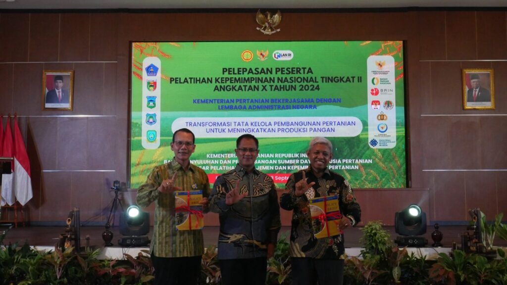 BOGOR – Pelatihan Kepemimpinan Nasional (PKN) Tingkat II Angkatan X Tahun 2024 Kementerian Pertanian resmi berakhir, Jumat (13/09). Pelatihan berlangsung dari tanggal 14 Mei hingga 13 September 2024 dilakukan secara blended learning.
